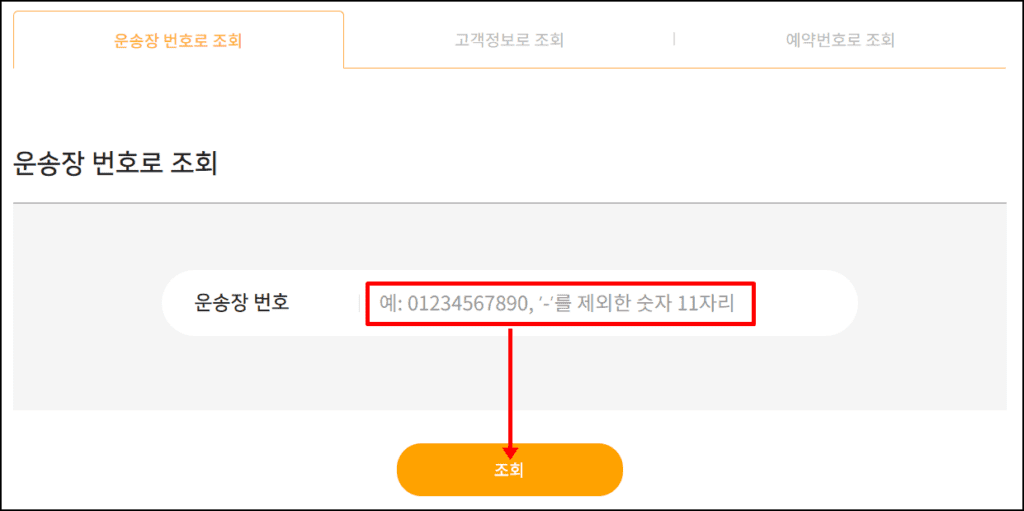 운송장 번호는 송장 또는 문자 메시지에서 확인 가능하며, 정확히 입력해야 조회가 원활합니다.