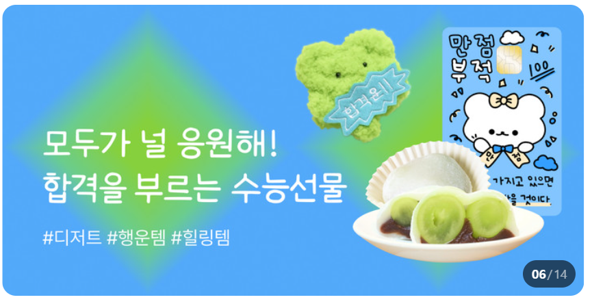 ✔️ 행운의 디저트: 간식이 단순히 음식이 아닌, 수험생에게 행운을 상징하는 아이템으로 구성되어 있어 의미를 더합니다.