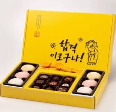 ✔️ 초코 찰떡: 초콜릿이 들어간 찰떡으로 달콤함이 가득해 기분을 좋게 하고, 에너지를 보충할 수 있어 수험생들에게 적합합니다.