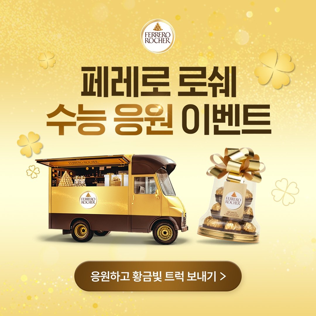 페레로로쉐는 수능 시즌을 맞아 황금빛 트럭 이벤트를 진행하며, 수험생들에게 응원의 메시지를 전달합니다.
