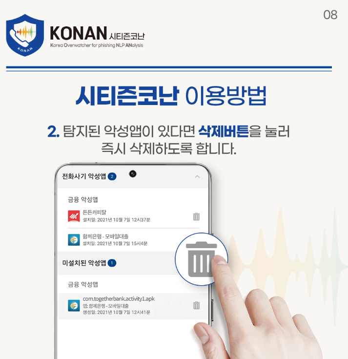 보이스 피싱과 스미싱으로부터 스마트폰을 안전하게 보호하기 위한 필수 앱, 시티즌 코난은 우리 생활에 없어서는 안 될 보안 도구입니다.