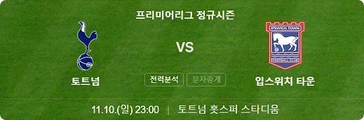 프리미어리그 팬들이 기다리던 빅매치, 토트넘 홋스퍼와 입스위치 타운의 11라운드 경기가 다가오고 있습니다.